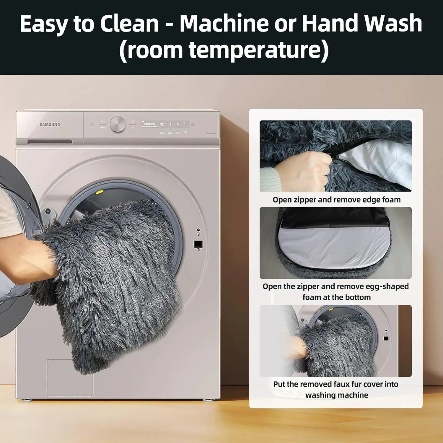 Removable Washable Faux Fur Dark Grey Large Human Pet Bed